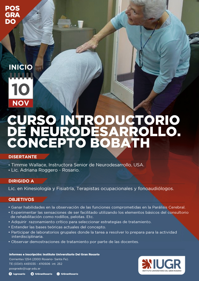 Curso de dos días y medio introductorio al concepto Bobath. Kinesióloga Timmie Wallace USA y Lic. Adriana Roggero.